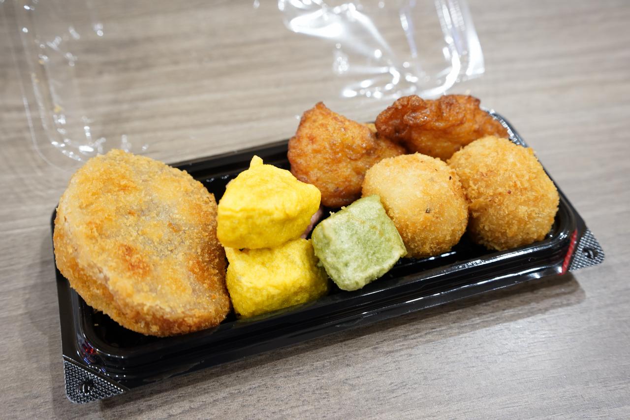 夕食を食べていなかったので、制限エリア内でお店を散策。からし蓮根などがいろいろ入った「おつまみセット」が600円で売っていたので購入。こういう詰め合わせセットはいいよね。