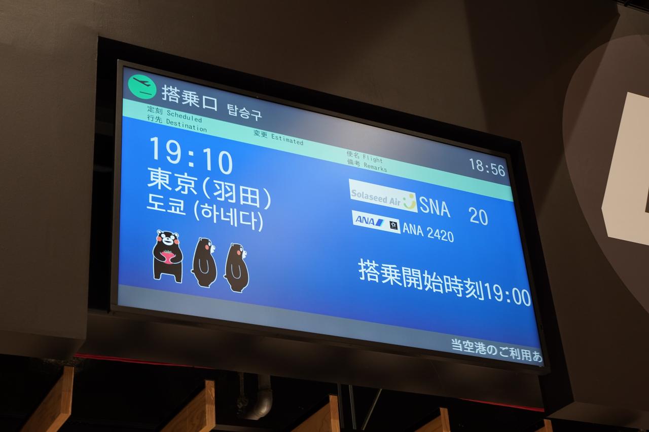 気が付いたら搭乗時間が近づいてきたので搭乗口へ。最後までくまモンがお出迎えしてくれます。