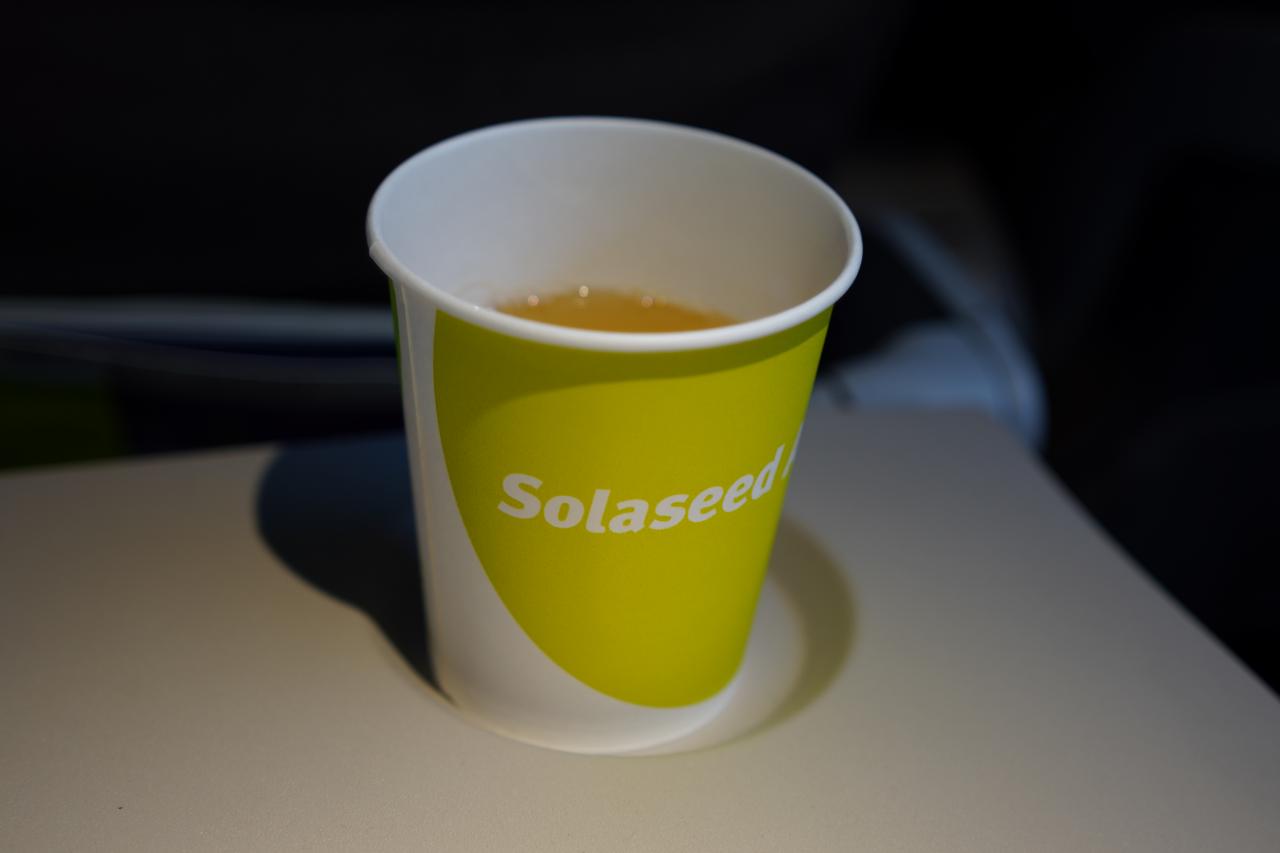 機内ドリンクはあごユズスープをごくごく。やっぱりこれが良いよね。