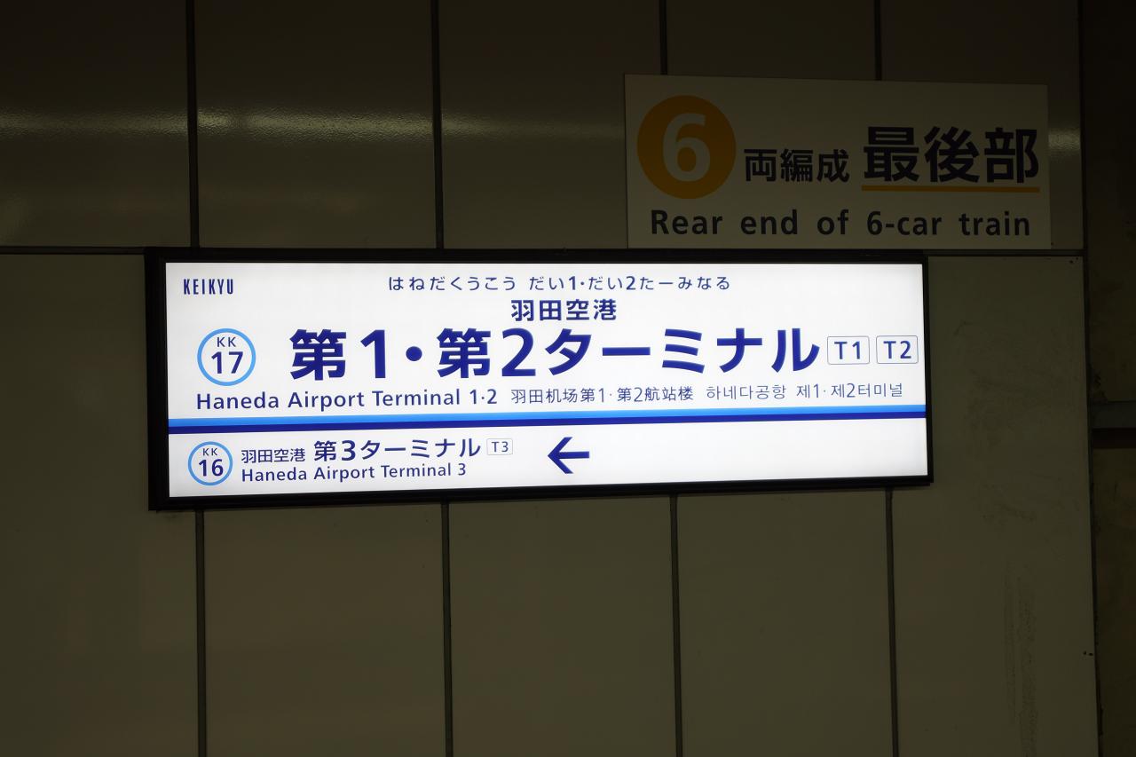 羽田空港の駅名標って列車が行かないと見えないんだよね。第1と第2が一緒になっているから、どっちから帰っても始発なのが便利。品川からだと座れないのがネックだけど……。