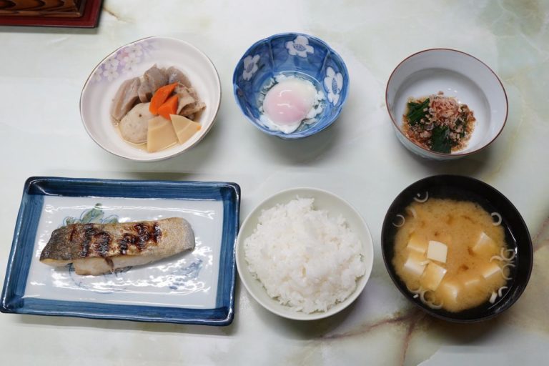 早く起きて作業をしようと心持ちは良いんだけど、結局起きたのは朝食の時間。昨晩の思いはどこへ行ったのかと疑問に思ってしまう日々です。さて、朝食はひらすの西京焼きに煮物、ほうれん草のお浸しと温泉たまごに味噌汁といった和食。