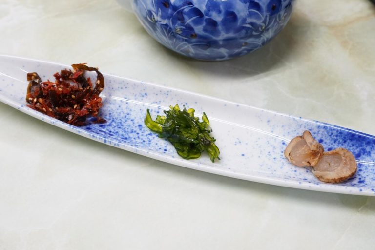 朝食だしあのくらいの量でも十分と思っていたら、少し遅れて鶏の照焼きと珍味の盛り合わせが運ばれてきました。これはご飯のおかわり必須ですね??