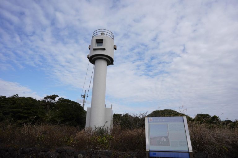続いては笠山鼻灯台。特に観光地ってわけでもないんだけど、道中に見つけたので案内看板に従って来てみました。ちなみにGoogleマップで案内させると、行き止まりとなっている反対側に案内されてしまうので注意。道にある看板に従って進みましょう。