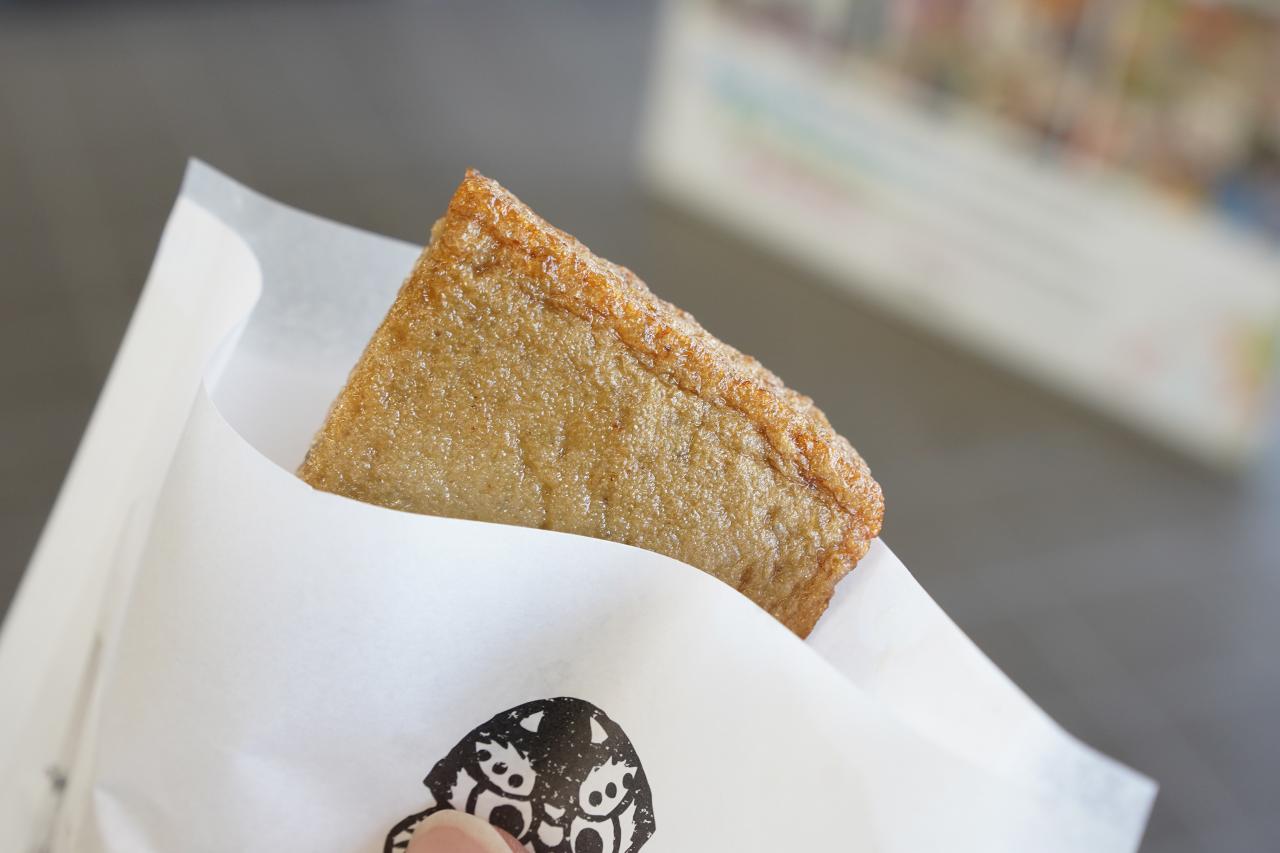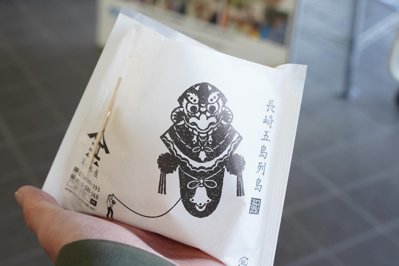 目的は浜田水産で売っている「ばらもん揚げ」。魚のすり身を揚げたもので、五島列島ならではのソウルフードです。単品で買おうかと思ったらばらもん揚げ(黒・白)と生姜天、玉ねぎ天に揚げしゅうまいが半分ずつ入っている「お試しセット」があったので購入。お値段は510円です。