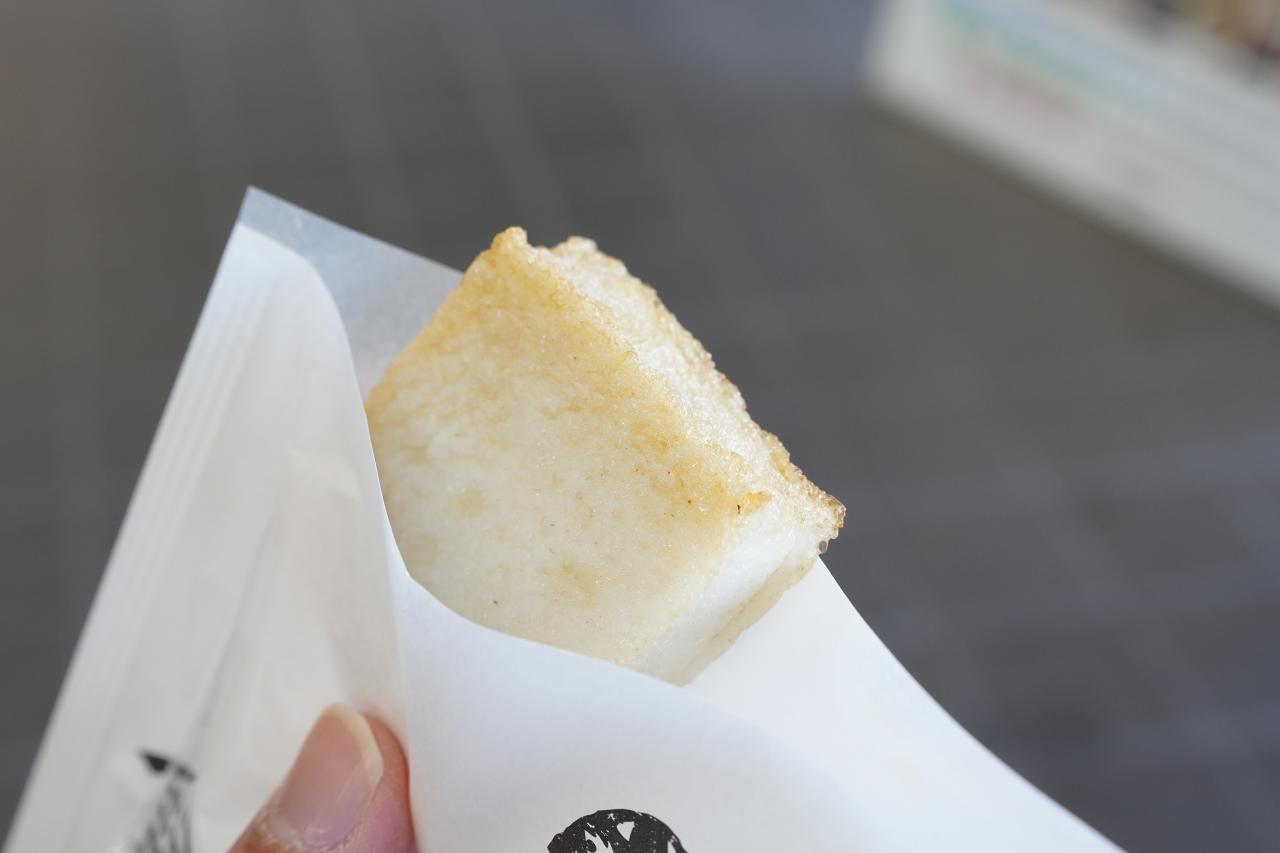 ばらもん揚げはアジをメインにした「黒」とエソをメインにした「白」の二種類。特に調味料などを使わなくてもおいしいし、揚げたてでアツアツ。福江島に来たらぜひ食べてみてほしい一品です。