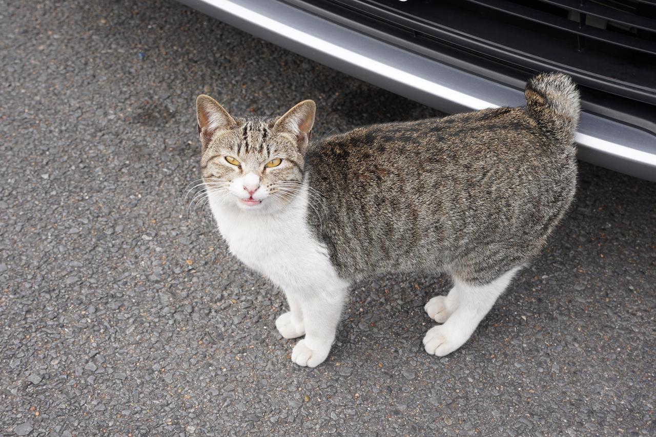 ばらもん揚げを食べた後に近くの「ドラッグストアモリ」でお買い物をしていたんだけど、駐車場にネコちゃんを発見。人懐っこくてかわいい。でも付いてきても一緒には行けないよ。