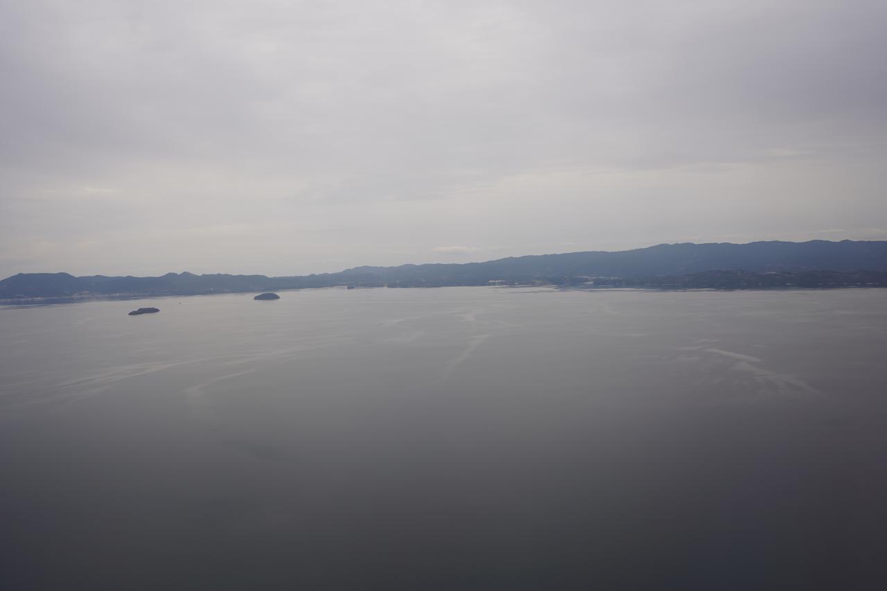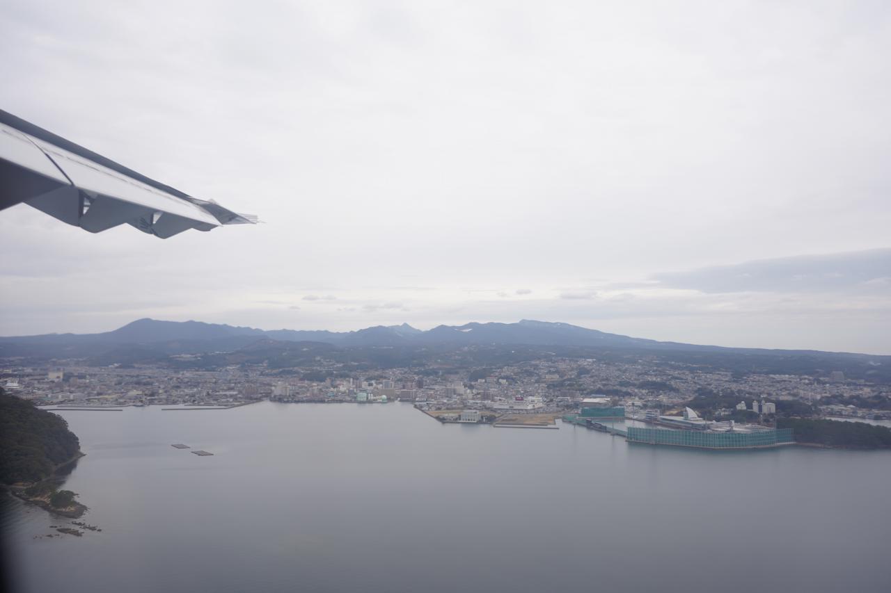 長崎空港を離陸。また明るい時間帯なので景色も楽しめます。曇ってるのが残念だけど。