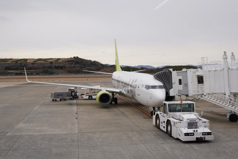 そしてふと横を見ると、フジドリームエアラインズ(FDA)の飛行機が止まっていました。時々チャーター便を使った旅行パッケージを販売しているようなので、この機体もチャーター便なのかな。