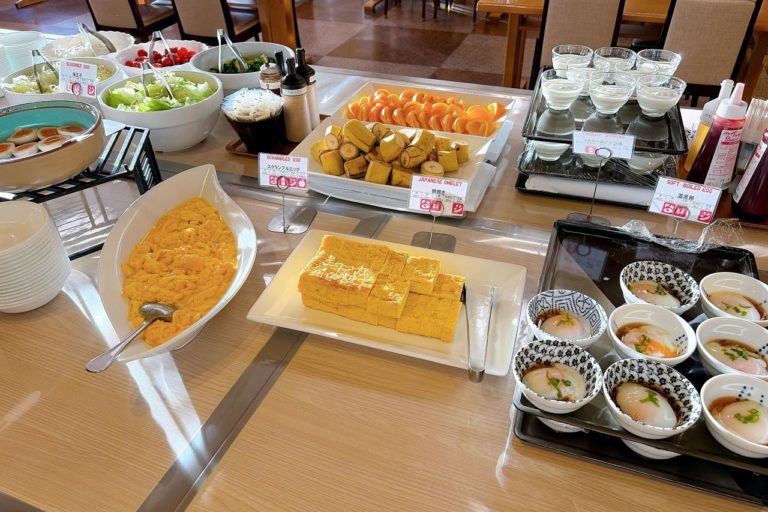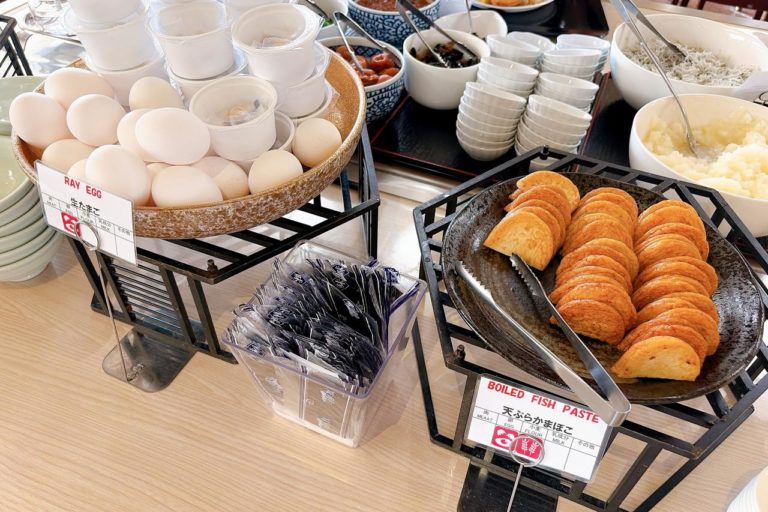 まずは温泉たまごに厚焼玉子、さらにスクランブルエッグに煮卵と卵料理が並びます。これだけじゃなくて卵料理のラインアップが多いのもここの朝食の特徴。なかなかこれだけの種類ってないよね。