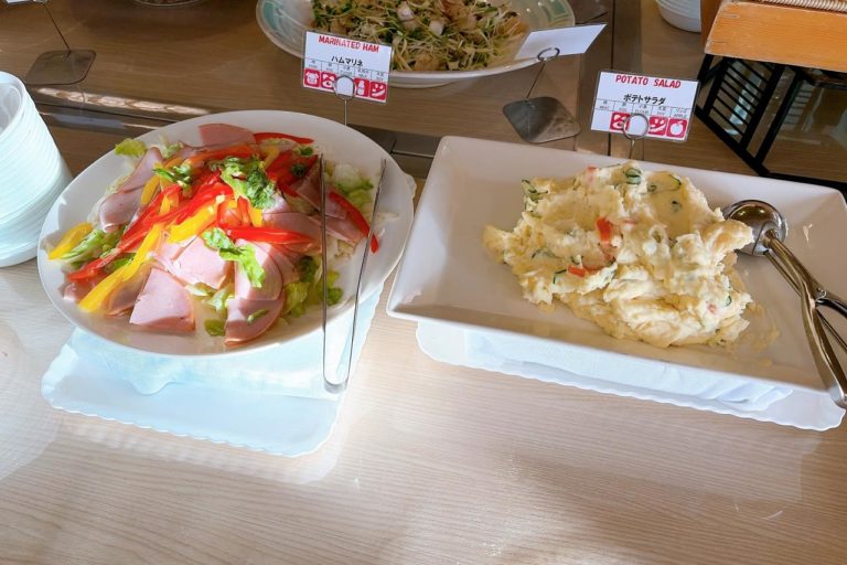 ポテトサラダとハムマリネ。ポテトサラダは見た感じ自家製な雰囲気。