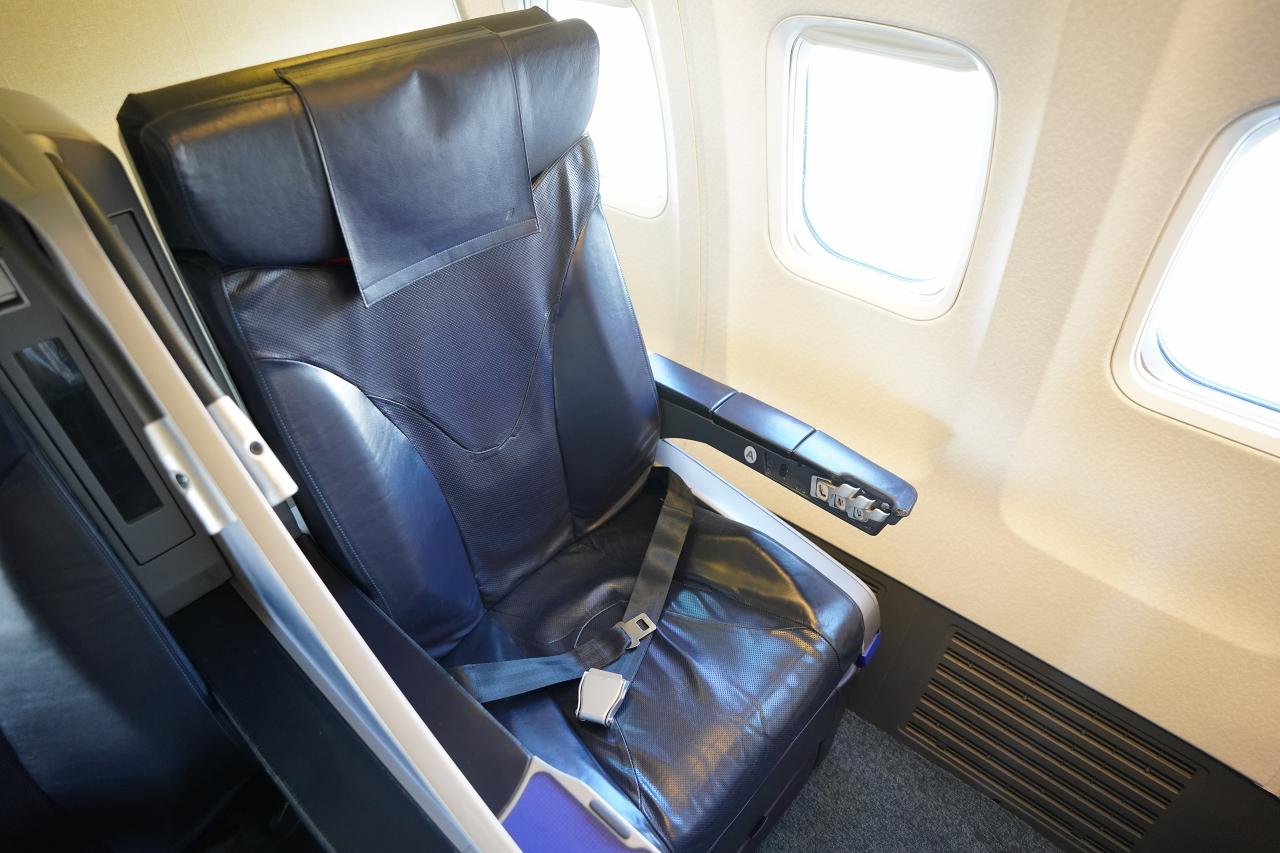 今回乗った「B737-800」の普通席にはUSB充電器しかありませんが、プレミアムクラスにはコンセントも設置。モバイルバッテリーも使えなくなるし、普通席にも全席コンセントが欲しい……。