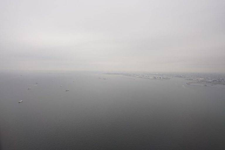 風が強いので運休を心配していたけども、無事に羽田空港からの飛行機が到着。基本的に降りられたなら離陸はできるので、目の前に来たなら安心です。