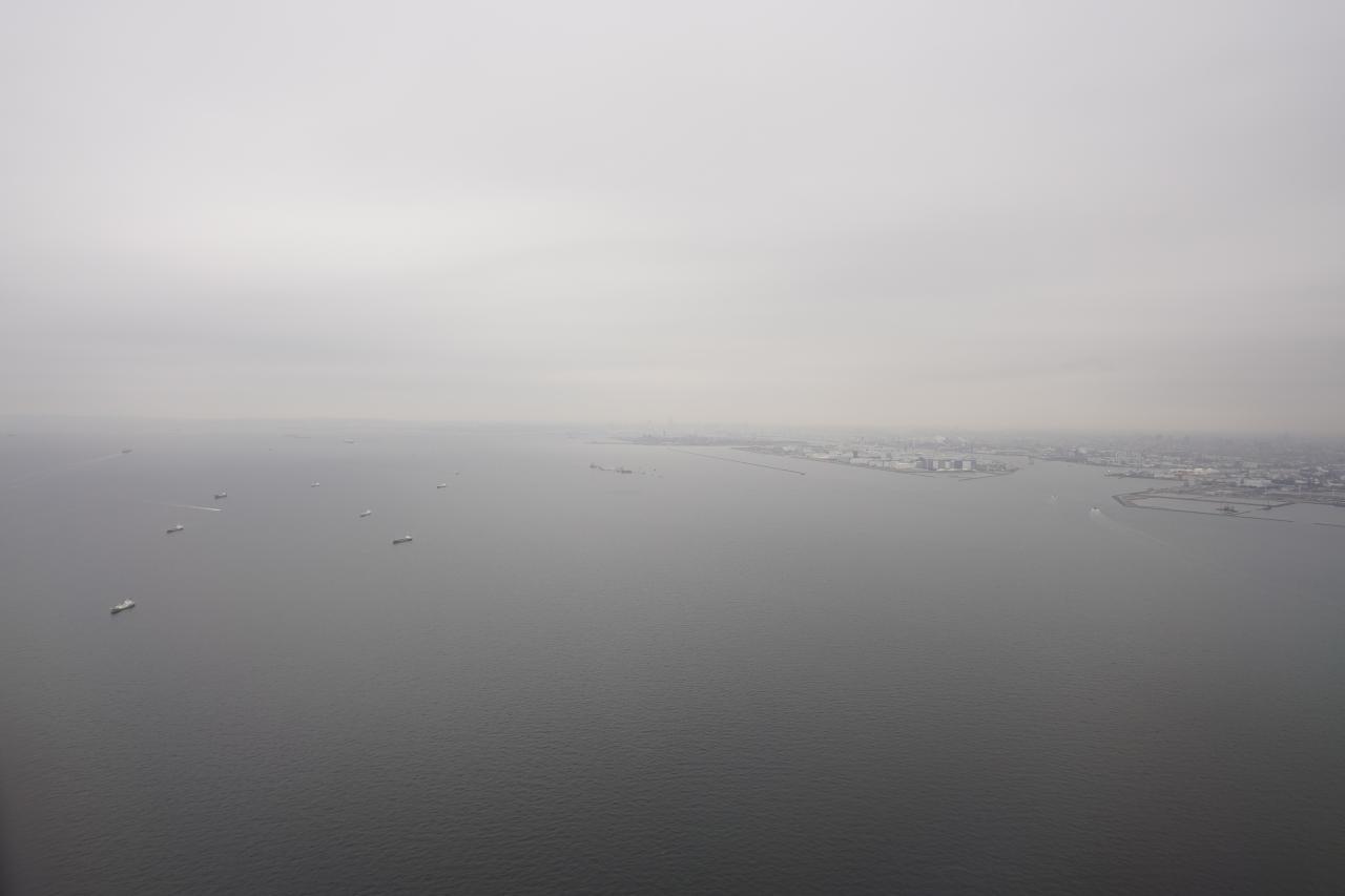 沖合を見ると……あれは流氷っぽい? もしかしたら欠航しなければ流氷帯まで行けたかもしれないけども、ちょっと遠すぎるような気もする。まあ乗って見られないよりは欠航して払い戻しで良かったかもね。