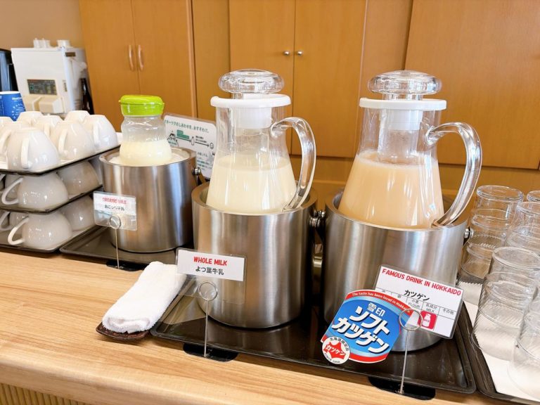 そして北海道で忘れてはならない牛乳は、よつ葉牛乳とおこっぺ牛乳の2種類が飲み比べできます。時期によっても味わいは変わってくるけど、おこっぺ牛乳は濃さとコクが全然違うのでぜひ飲み比べてみてほしい。
