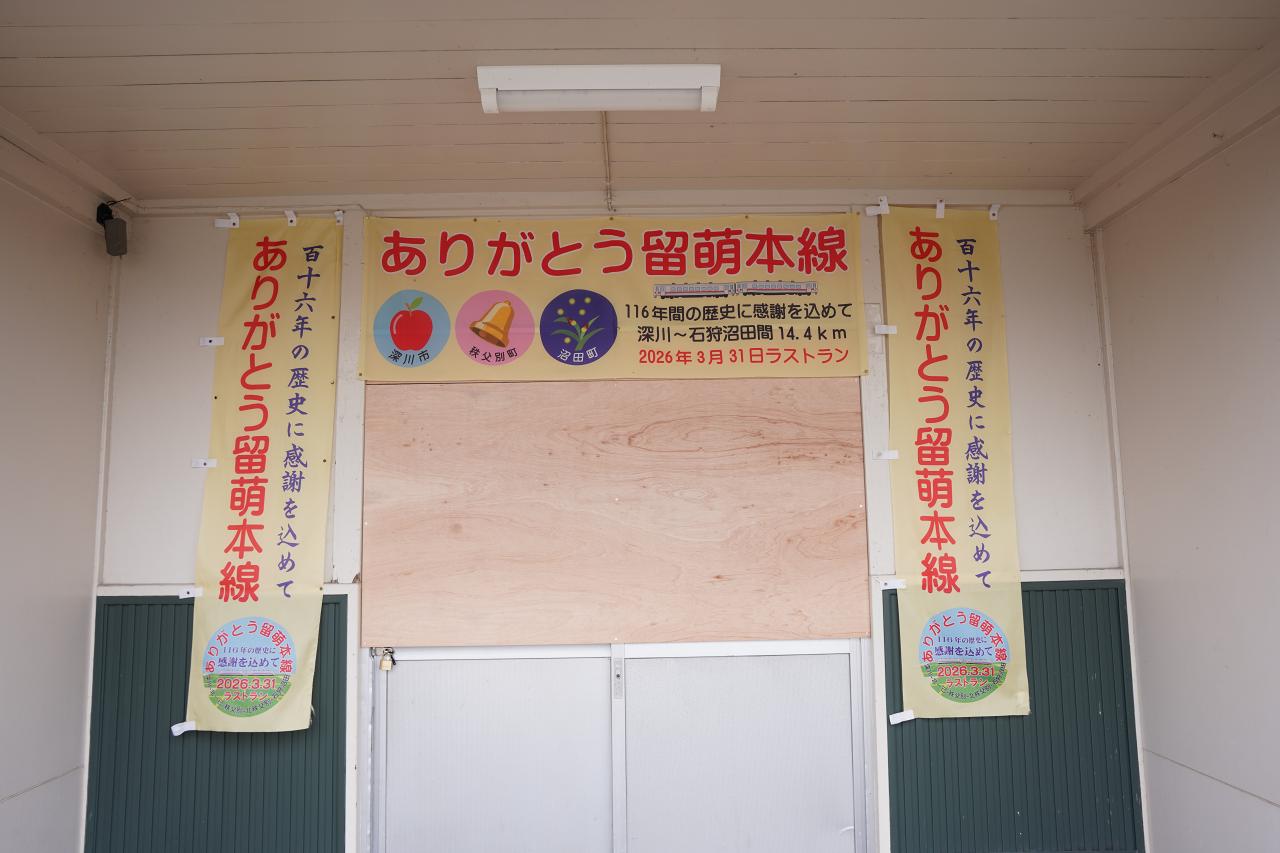 そこには「ありがとう留萌本線」と書かれた旗が設置されていました。ラストランの3月31日にお別れセレモニーが実施されたようなので、その時に使われていたものなのかもしれません。