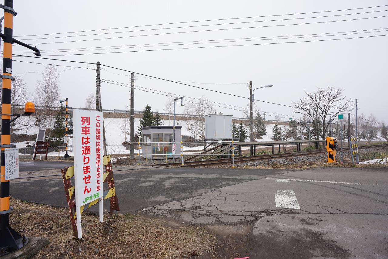 踏切の真横に有った駅で、踏切には「この踏切は使用停止のため列車は通りません」との立て看板が設置されていました。なお背後に見えるのは深川留萌自動車道で、深川から留萌までの大部分が無料の高規格道路。道路は留萌まで徐々に延伸して2020年に留萌まで全線開通し、鉄道は2023年に石狩沼田から留萌が部分廃止され、2026年に全線廃止。移動手段の世代交代を間近に見られるポイントになってしまいました。