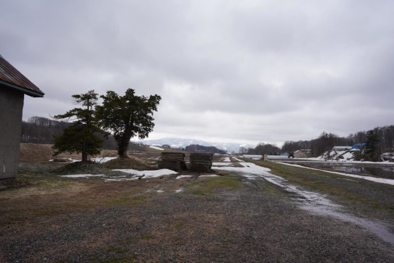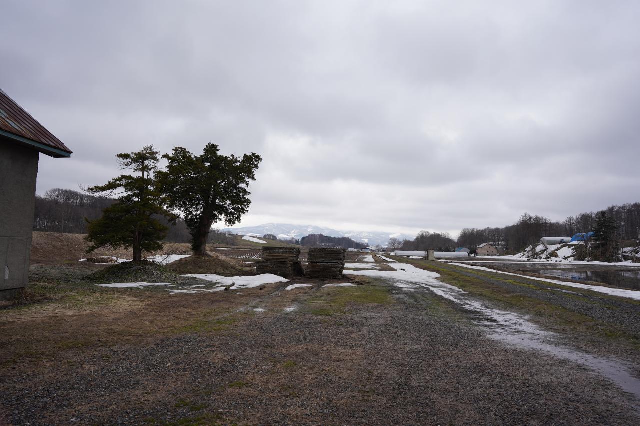 深名線が走っていたのは奥に見える林の手前あたり。雪が積もっていて近くまではいけそうにありませんでした。よくよく考えると、こんな雪のあるシーズンに廃線を辿るのは間違ってる気がする。
