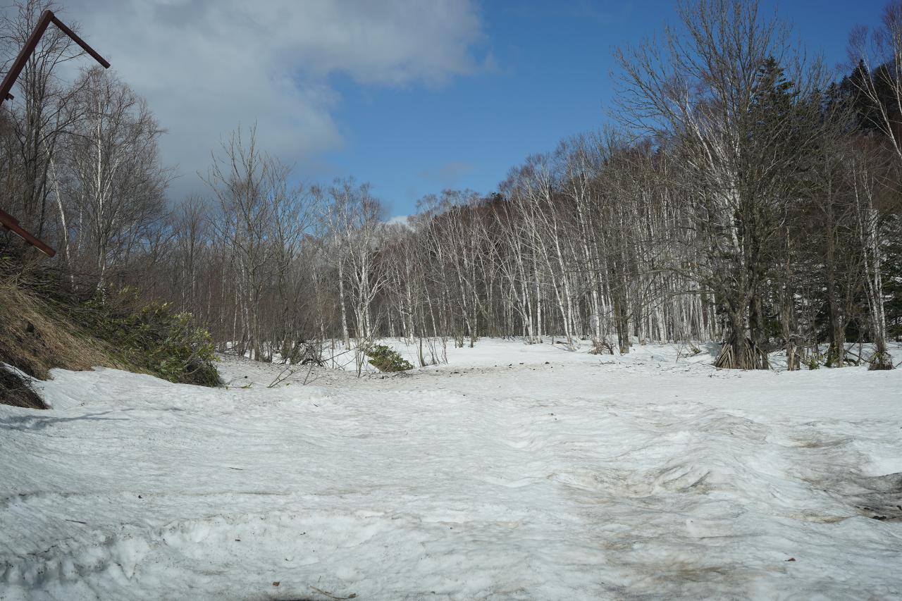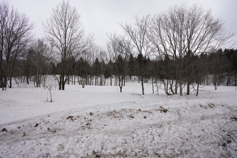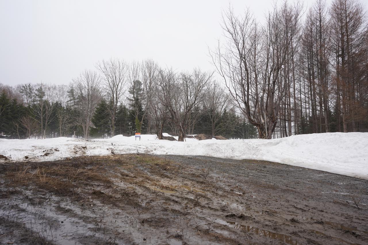 駅跡は雪に埋もれてしまっていますが、なんとなく線路の後だったのかなと思える所がありました。雪が無いシーズンならばはっきり見えそう。