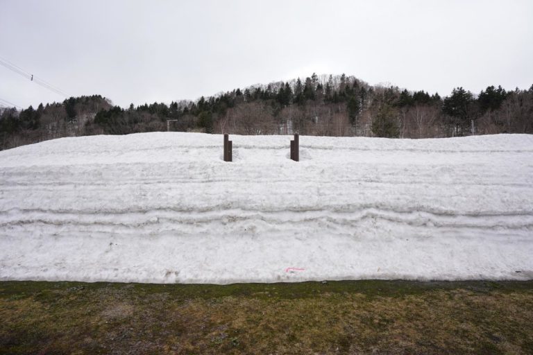 お店の入口には2018年に記録した積雪記録のラインがあり、その高さは324センチ! 入口がすっぽり埋まってしまうほどの高さまで積もったってのが想像できないし、2018年ってそんなに昔でもないのが驚き。