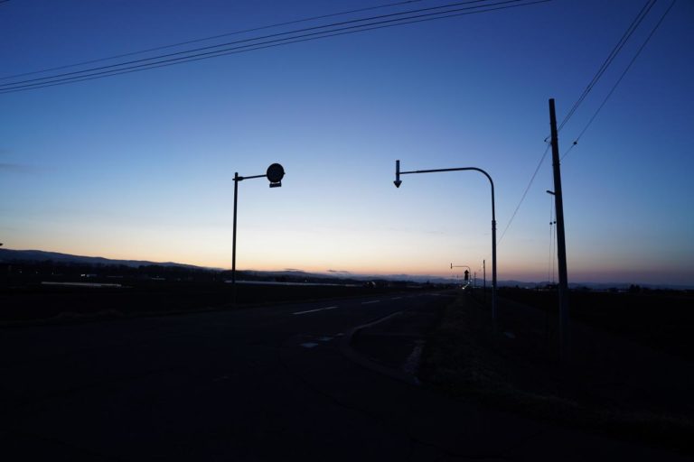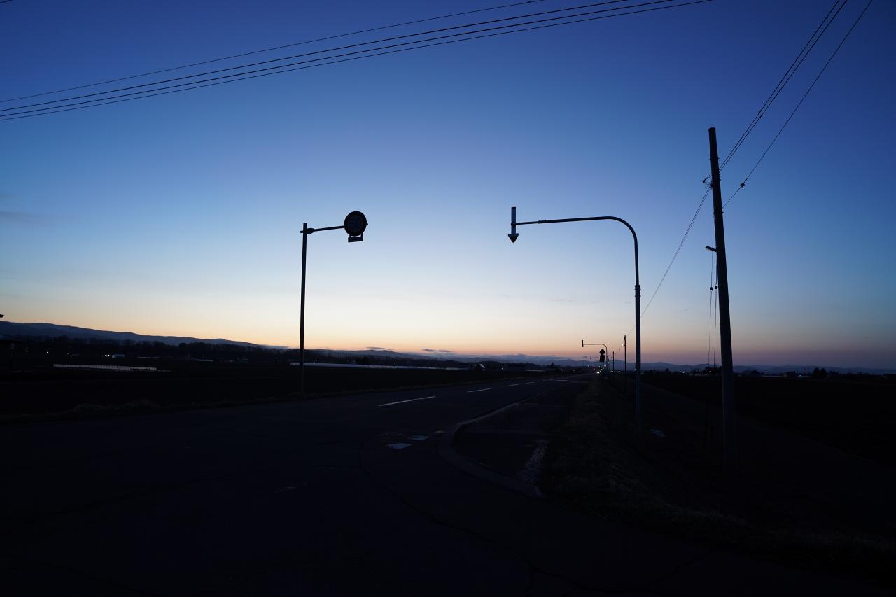 ラーメンを食べたら良い時間。空港に向かって車を走らせます。道中では夕暮れのタイミングだったこともあり、なかなか神秘的な光景が撮影できました。街灯などが無いからこその景色できれい。