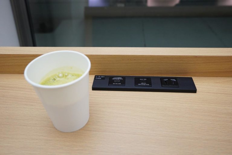 座席の前にはUSB-AとCの充電プラグが付いていました。スマホの充電くらいしかできない出力でしたが、無いよりはあった方が良い。でも欲をいうと65Wくらい給電できるポートが欲しくなる。